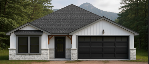 Evergreen – A cozy 3 bedroom, 2 bath home with a 2-car garage, offering approximately 1,300 sq ft of living space. This single-story plan is efficient and welcoming, ideal for first-time homeowners or those looking to downsize without sacrificing comfort.